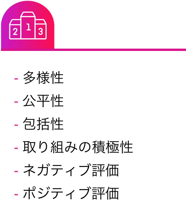 貴社のDEI戦略等に合わせた定量調査の設計からレポートまでのお手伝いをいたします。また、 DEIジャーニーの進捗状況に応じて、最適なステップをご提案することも可能です。