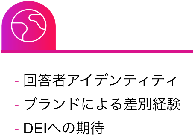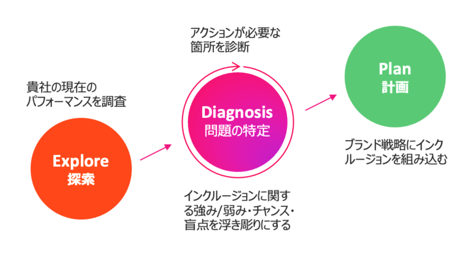 多様な消費者の視点からブランドのインクルージョンの取り組みを評価し、強みと弱みを特定していきます。